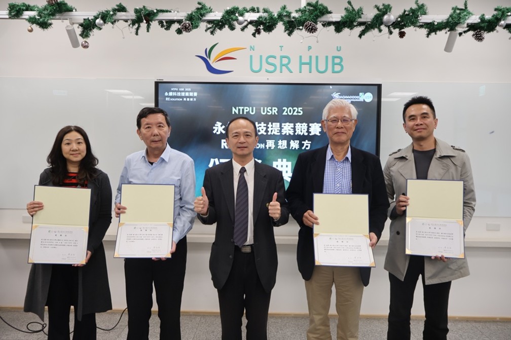 Distinguished judges and faculty, including Academic VP Chen You-Shan and USR Director Minyu,Day, praised the students for transforming sustainable concepts into actionable industry solutions. This event highlights NTPU’s commitment to fostering a "low-carbon, co-prosperous ecosystem" across Sanxia, Yingge, and Shulin, positioning the university as a vital partner for local social innovation and youth-led sustainable development.