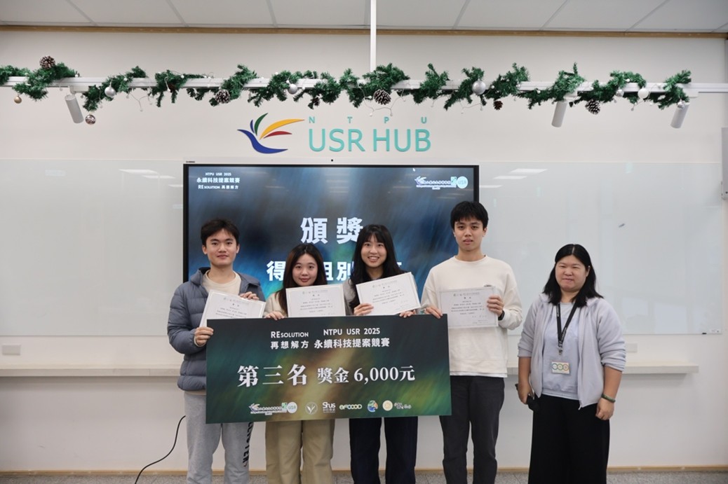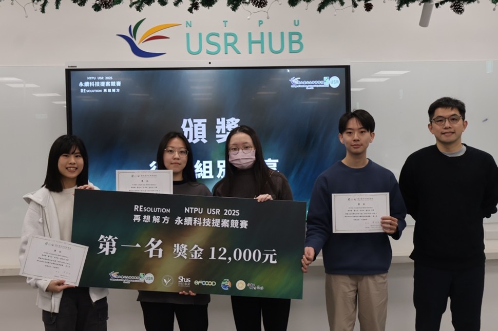 On December 12, 2025, the NTPU College of Business USR Project hosted the awards ceremony for the "REsolution" Sustainable Technology Innovation Proposal Competition. Centered on the theme "Sustainability × Technology × Innovation," the competition challenged students to solve real-world pain points for local brands, including eFOOOD, Tian Fang Tea, and SHUANG WANG (The Shu's Pottery).