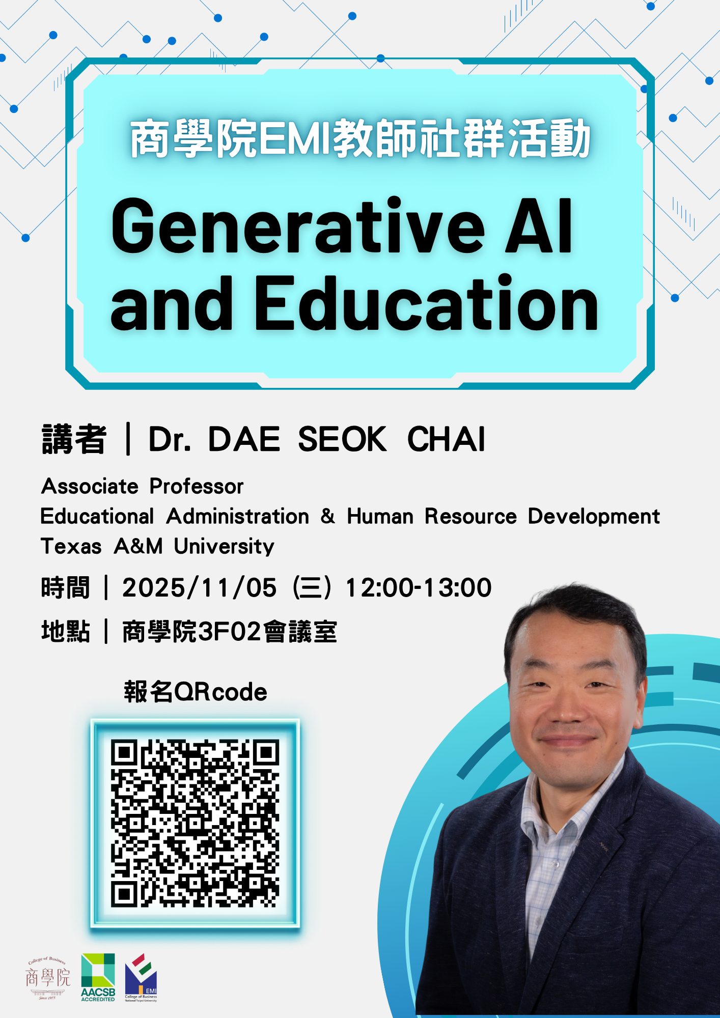 主講人:美國德州農工大學Texas A&M University Educational Administration & Human Resource Development 副教授Dr. Dae Seok Chai