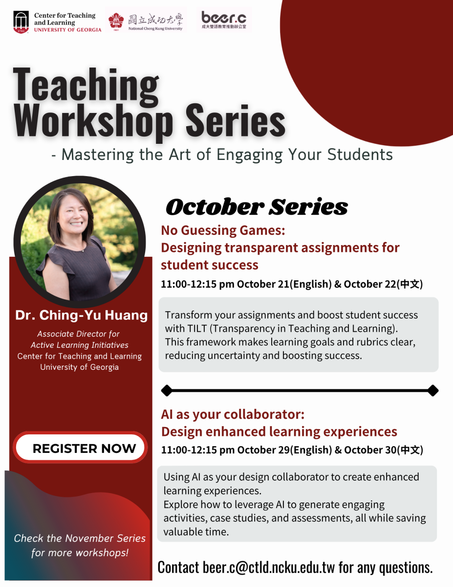 【轉知】國立成功大學辦理「EMI教學線上增能工作坊」
