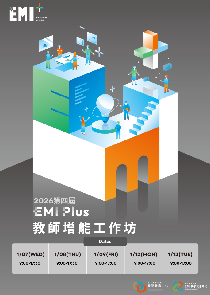 【轉知】國立臺灣大學EMI教學資源中心辦理第四屆「EMI Plus教師增能工作坊」