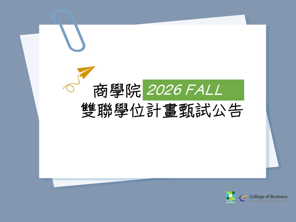 【公告】商學院2026秋季院級雙聯學位計畫開放申請