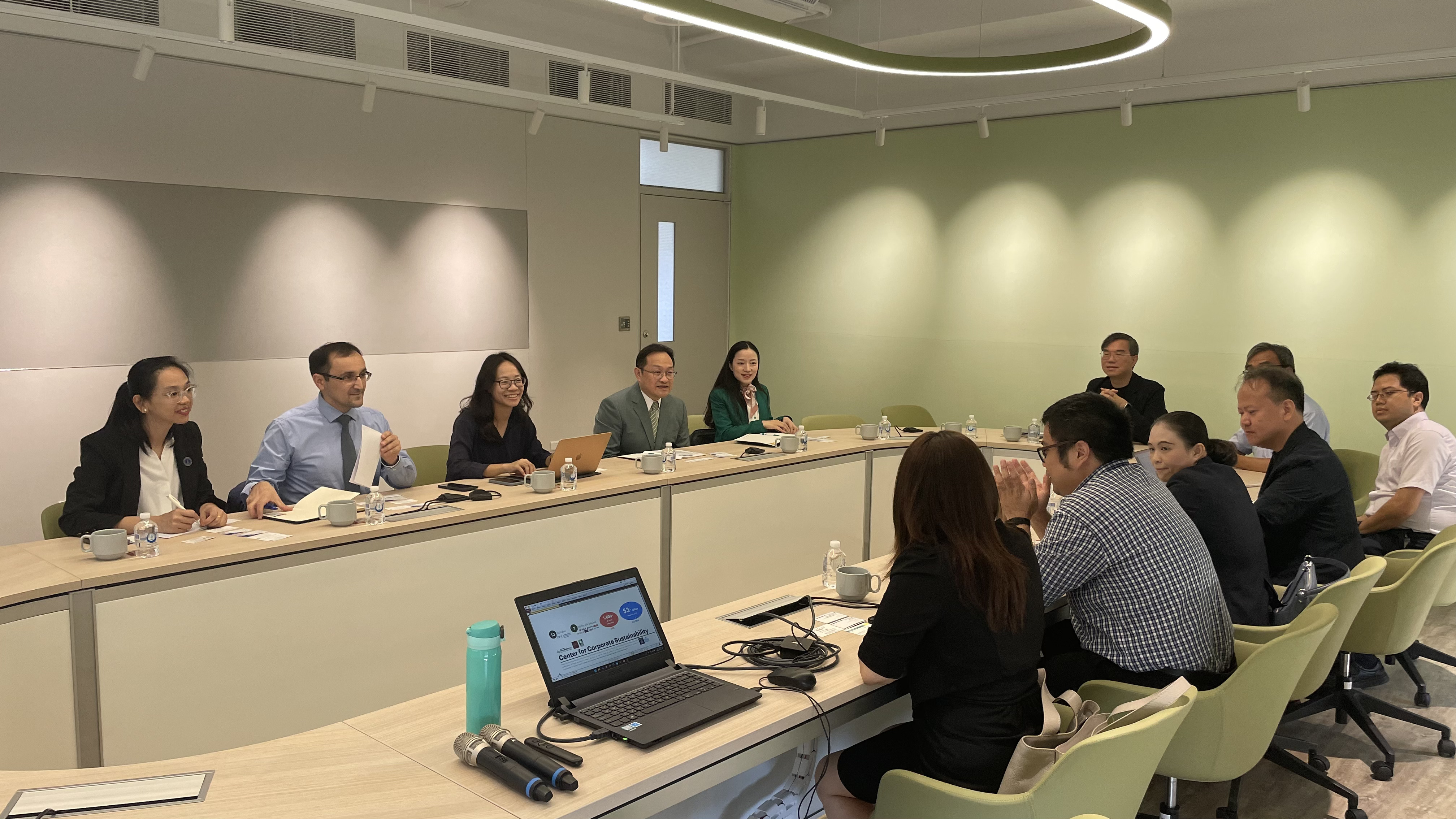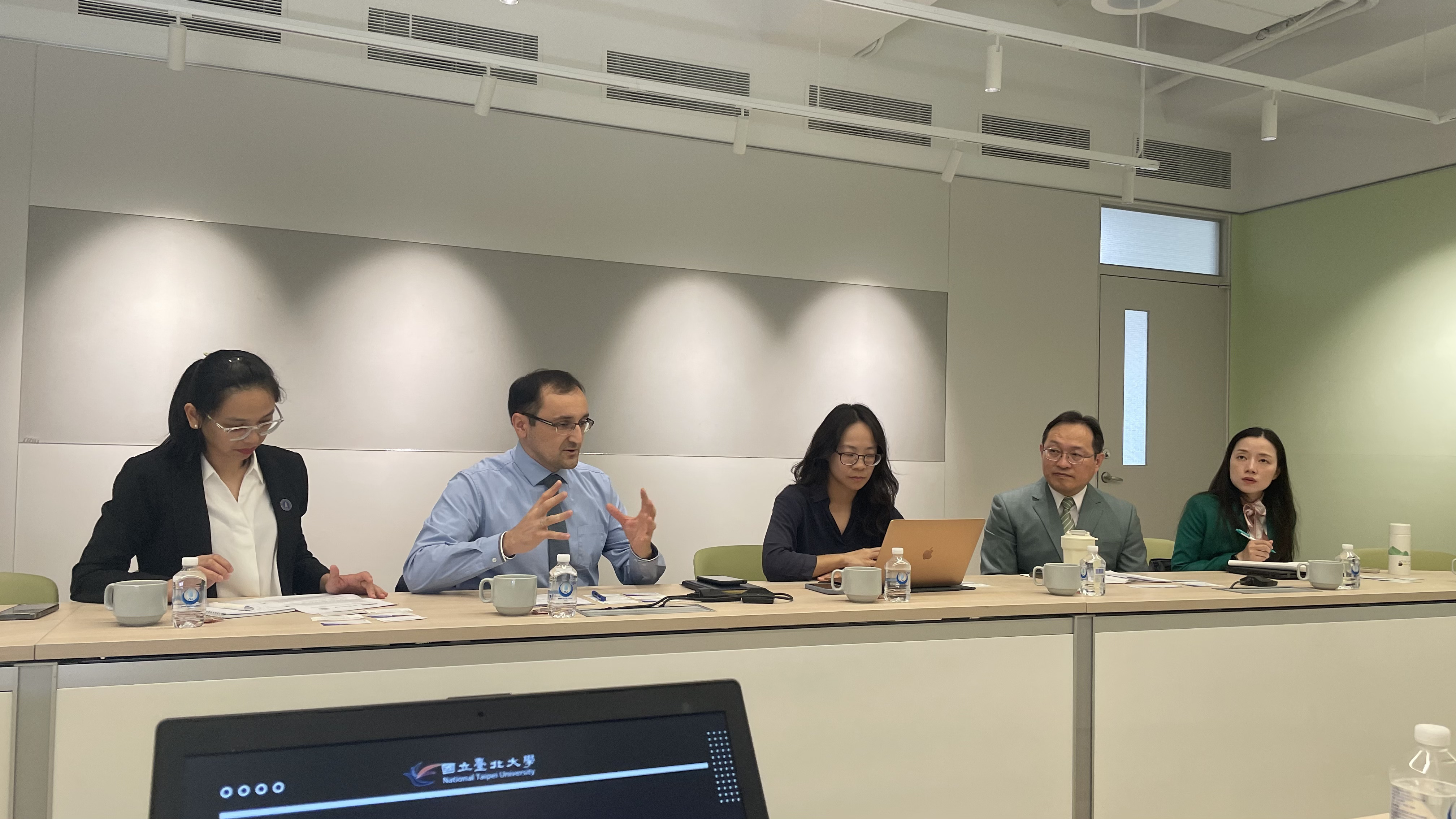 此次來訪由商學院黃啟瑞院長親自接待,並邀集全球變遷與永續科學暨商學院企業永續中心主任池祥麟、國際事務處國合組組長陳克瀚、永續創新國際學院院長詹佳縈、副院長馬國勳,以及金融與合作經營學系代理主任柯文乾與副教授陳淑玲等人共同參與座談。
